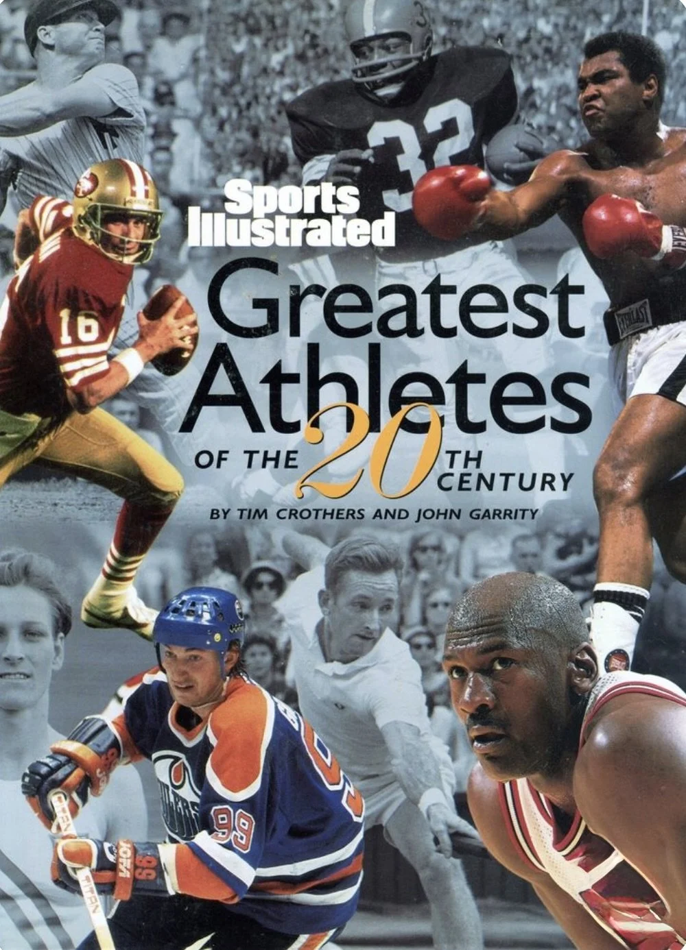 There's Joe Montana in the upper left-hand corner of Sports Illustrated's authoritative book, written in 1999, entitled "Greatest Athletes of the 20th Century"...of which Montana was one. No other NFL quarterback was included on this most exclusive list of 25 sports legends. Surrounding Montana are Mickey Mantle (above him), with Jim Brown and Muhammad Ali across from him. Way to go, Joe!