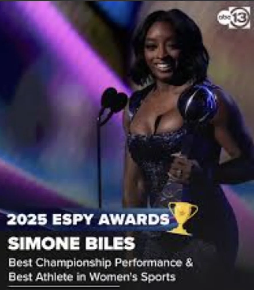 On July 16, 2025, Biles won the ESPY for Best Championship Performance. The other nominees were Rory McIlroy for joining golf’s Career Grand Slam Club, Freddie Freeman (Dodgers World Series MVP vs. the Yankees), and Steph Curry (2024 Olympic Champion and U.S. team leader).