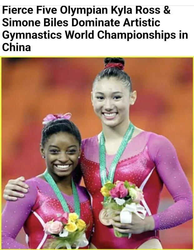 Since Simone Biles has won 8 World Titles (2 Olympics and 6 World Championships)...her record exceeds by one that of Tom Brady (who won 7 Super Bowls) and two over Michael Jordan (with 6 NBA Titles). 2013 was a historic run for Anthony's and Richard's client, Kyla Ross…who at the age of 16, seriously challenged Simone. Biles eventually became the unquestioned GOAT (Greatest Of All Time) in women's gymnastics.